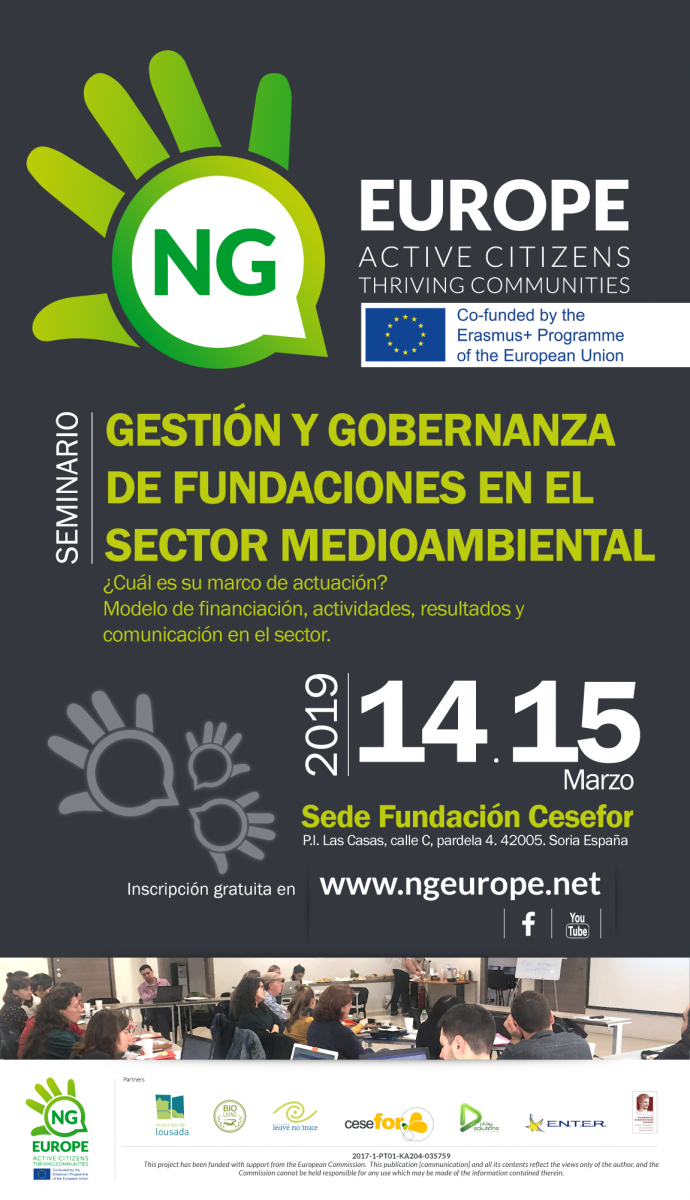 La Fundación Cesefor organiza este Seminario técnico, los días 14 y 15 de marzo, en Soria, para discutir y poner en común la gestión de Fundaciones privadas y públicas del sector medioambiental en España, en el marco del apoyo del proyecto NGEurope al liderazgo en el tercer sector. En este seminario se abordarán cuestiones acerca de la gestión de fundaciones, gobernanza, modelo de financiación, comunicación, y otros temas transversales que afectan a su funcionamiento y razón de ser en el sector.